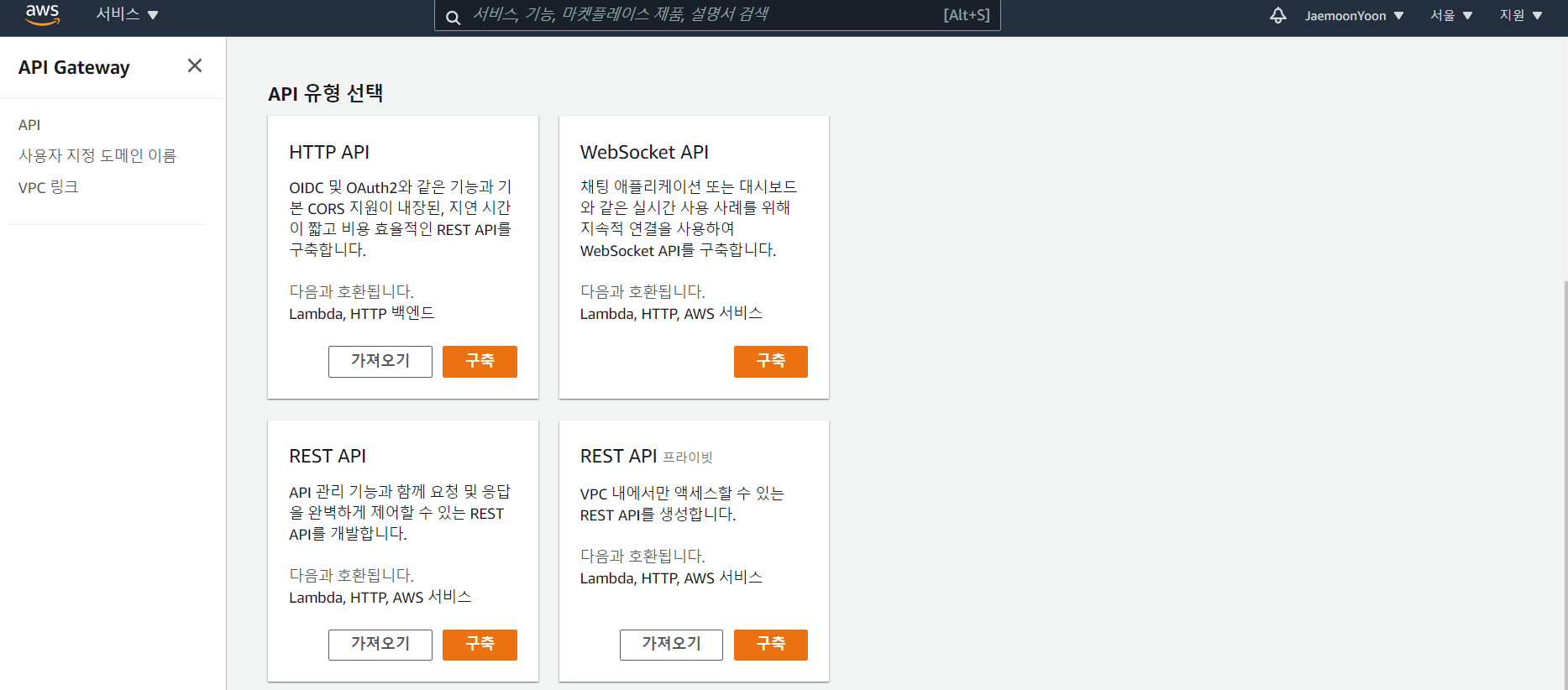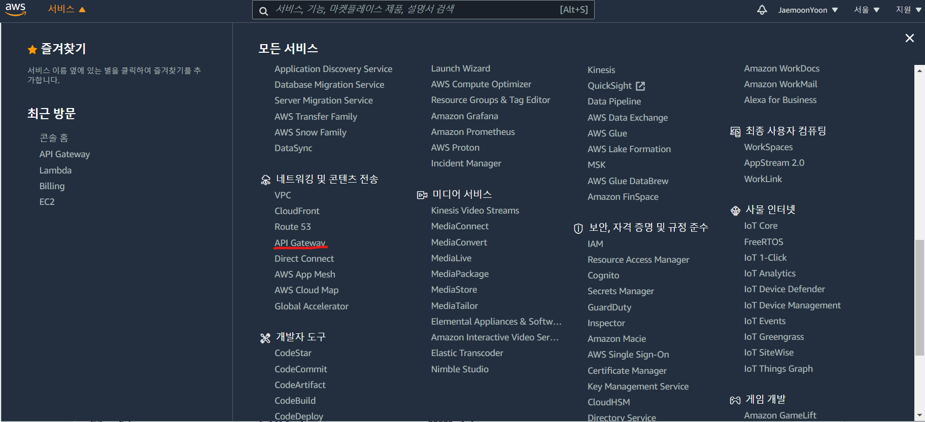 API Gateway 서비스를 사용하겠다.